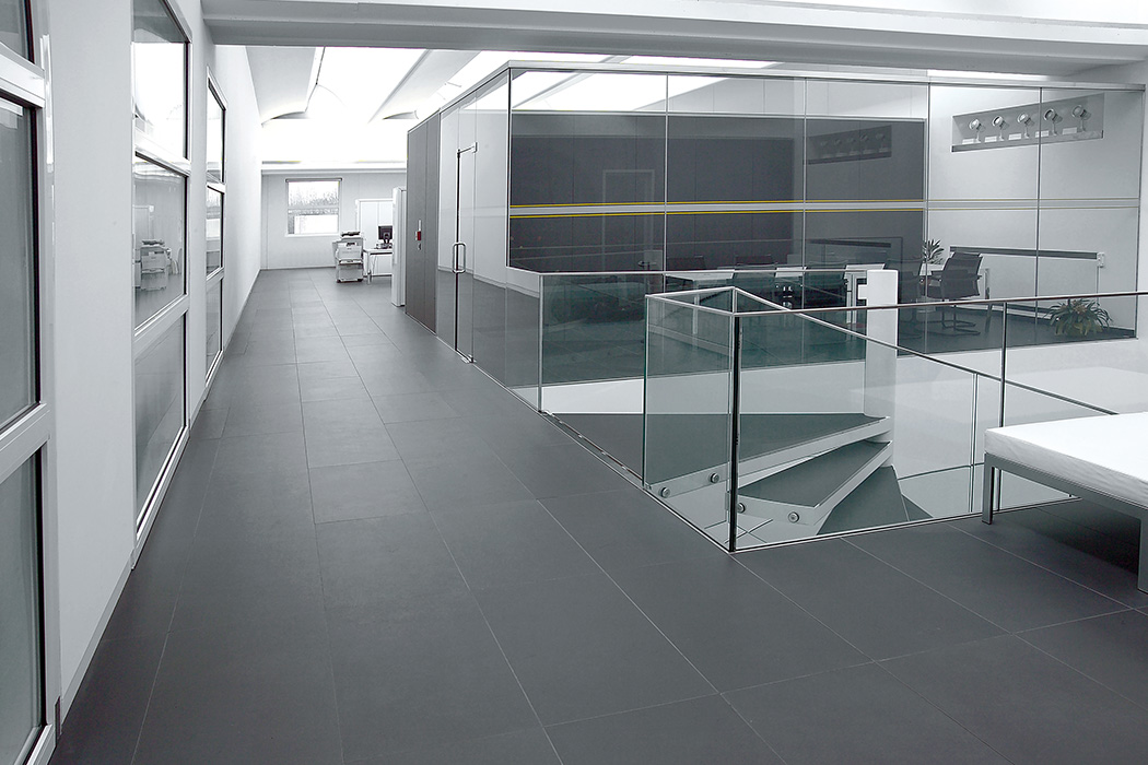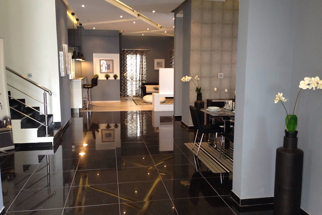 Diagonal tile patterns make a durable design statement and create the illusion of space.